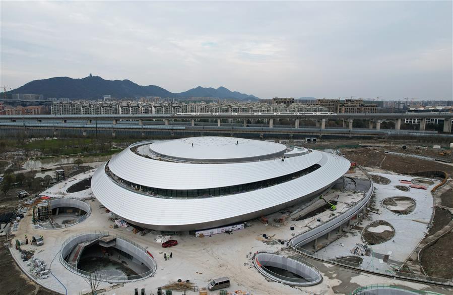 從空中俯瞰即將竣工的杭州亞運會電競館(無人機(jī)照片,2月23日攝)。