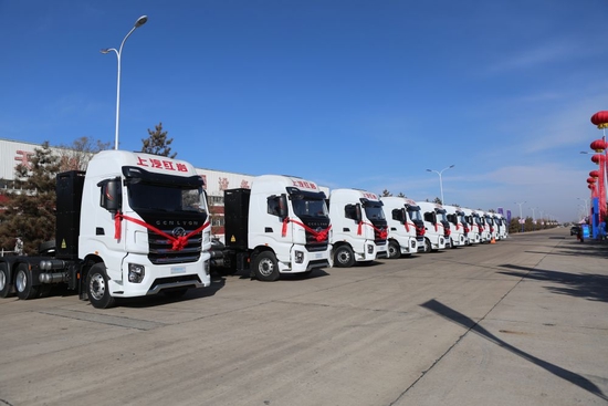 上汽紅巖鄂爾多斯基地天隆工廠的首批投產(chǎn)車輛。(受訪者供圖)