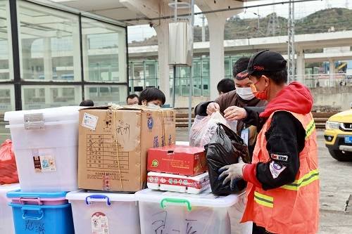 志愿者為醫(yī)護(hù)人員搬運(yùn)物資。 林鶴攝