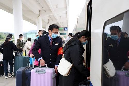 南寧局集團(tuán)公司組織車站開辟綠色通道,提前做好其他車次分流工作,優(yōu)化勞力安排,增加進(jìn)站、安檢、檢票、站臺(tái)客運(yùn)力量,組織黨團(tuán)員突擊隊(duì)引導(dǎo)返程抗疫人員進(jìn)站乘車,主動(dòng)幫助搬運(yùn)行李、醫(yī)療器械等物資。列車工作人員加強(qiáng)車廂巡查巡視力度,根據(jù)抗疫人員需求及時(shí)提供溫馨的出行服務(wù)。