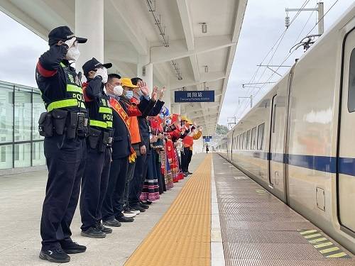2月16日14時(shí),載有1004名醫(yī)護(hù)人員的D9686次列車從百色市田陽站緩緩開出,2小時(shí)后直達(dá)欽州東站,護(hù)送到百色參與抗疫工作的醫(yī)護(hù)人員安全順利返程。當(dāng)天下午,田東北站還開行2趟往梧州南、桂林北站的抗疫人員返程專列。