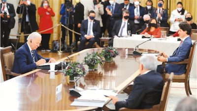 2021年11月18日,美國(guó)、加拿大和墨西哥三國(guó)領(lǐng)導(dǎo)人在華盛頓舉行會(huì)談。