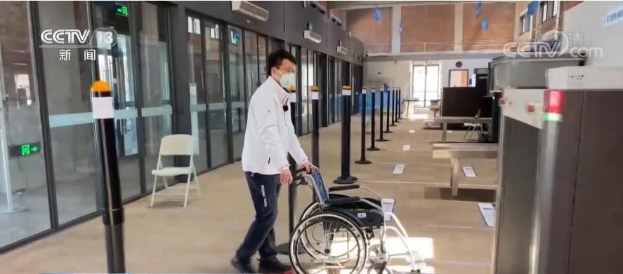 總臺記者 張景:這里是北京冬殘奧村的代表團接待大廳,是各代表團來村的第一站。為了方便坐輪椅人士快速安全通過,在安檢的環(huán)節(jié)不用過比較窄的安檢門,專門有綠色通道,有安保人員進行手檢。