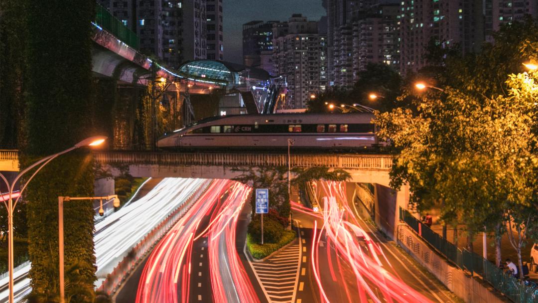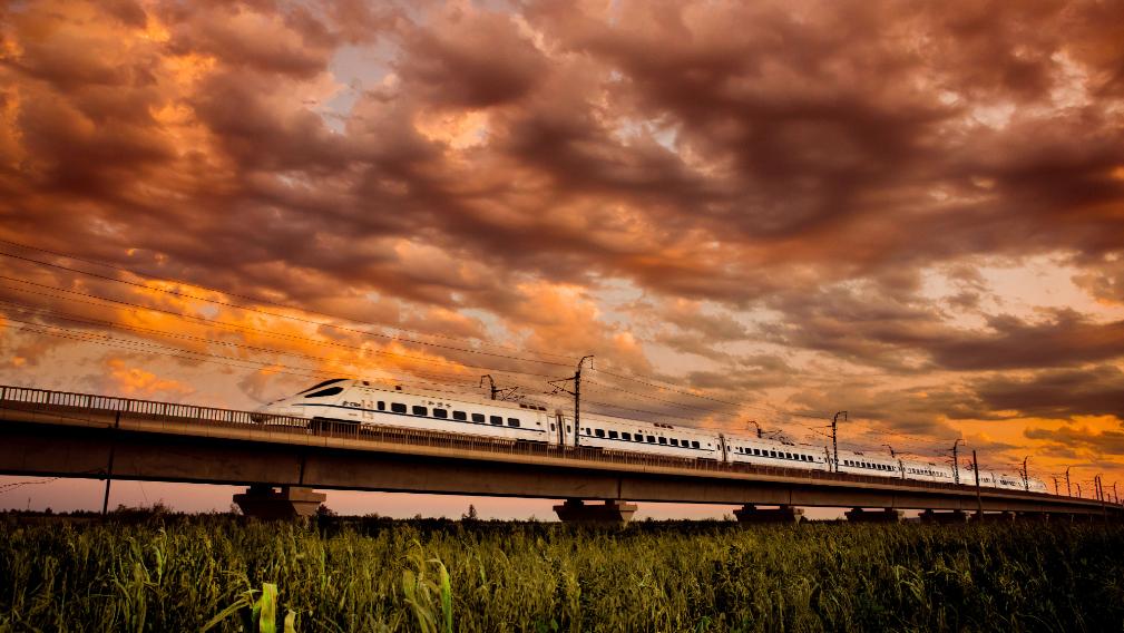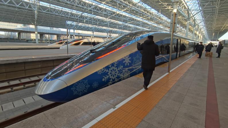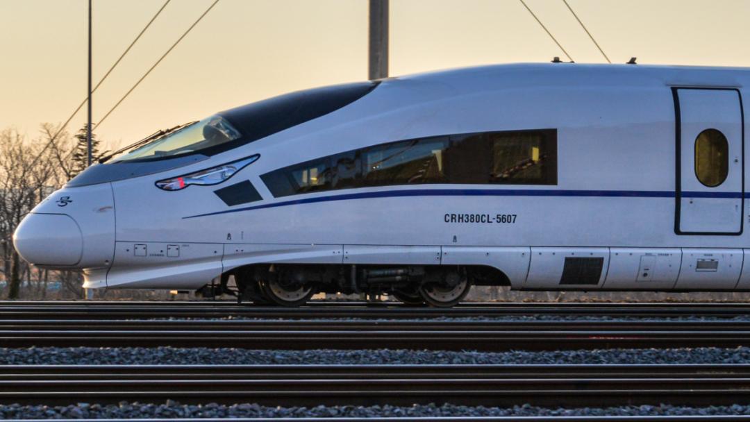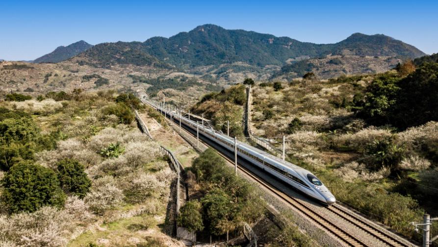 春運(yùn)首日,動(dòng)車穿越梅花林