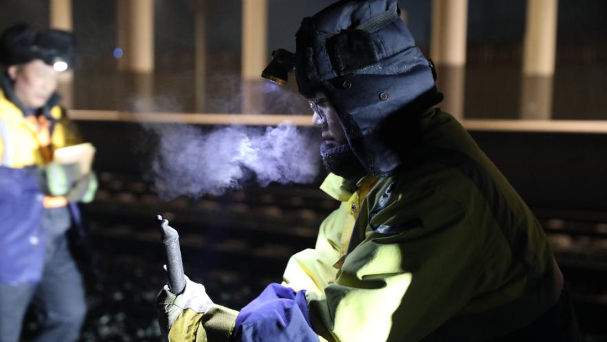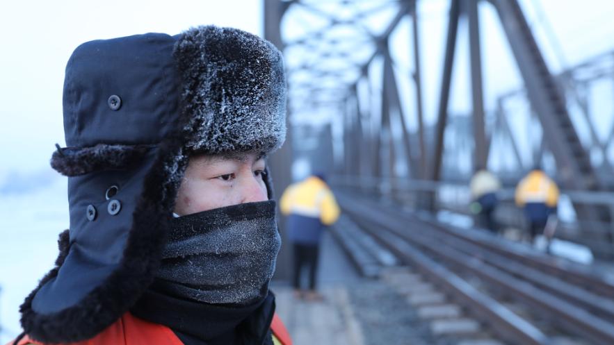 鐵路橋梁上,嚴(yán)寒下的堅(jiān)守