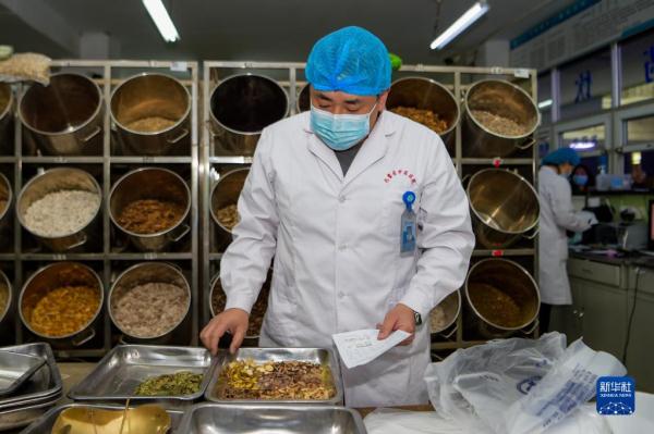 2月25日,內(nèi)蒙古自治區(qū)中醫(yī)醫(yī)院藥劑師根據(jù)處方調(diào)配中藥。