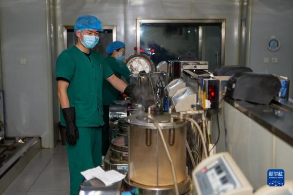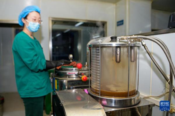 2月25日,內(nèi)蒙古自治區(qū)中醫(yī)醫(yī)院藥劑師查看中藥煎煮情況。