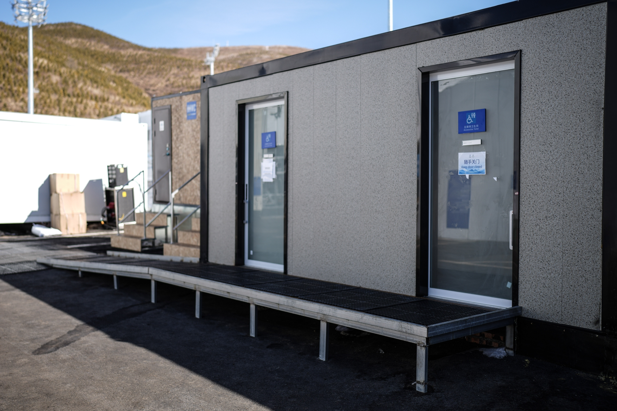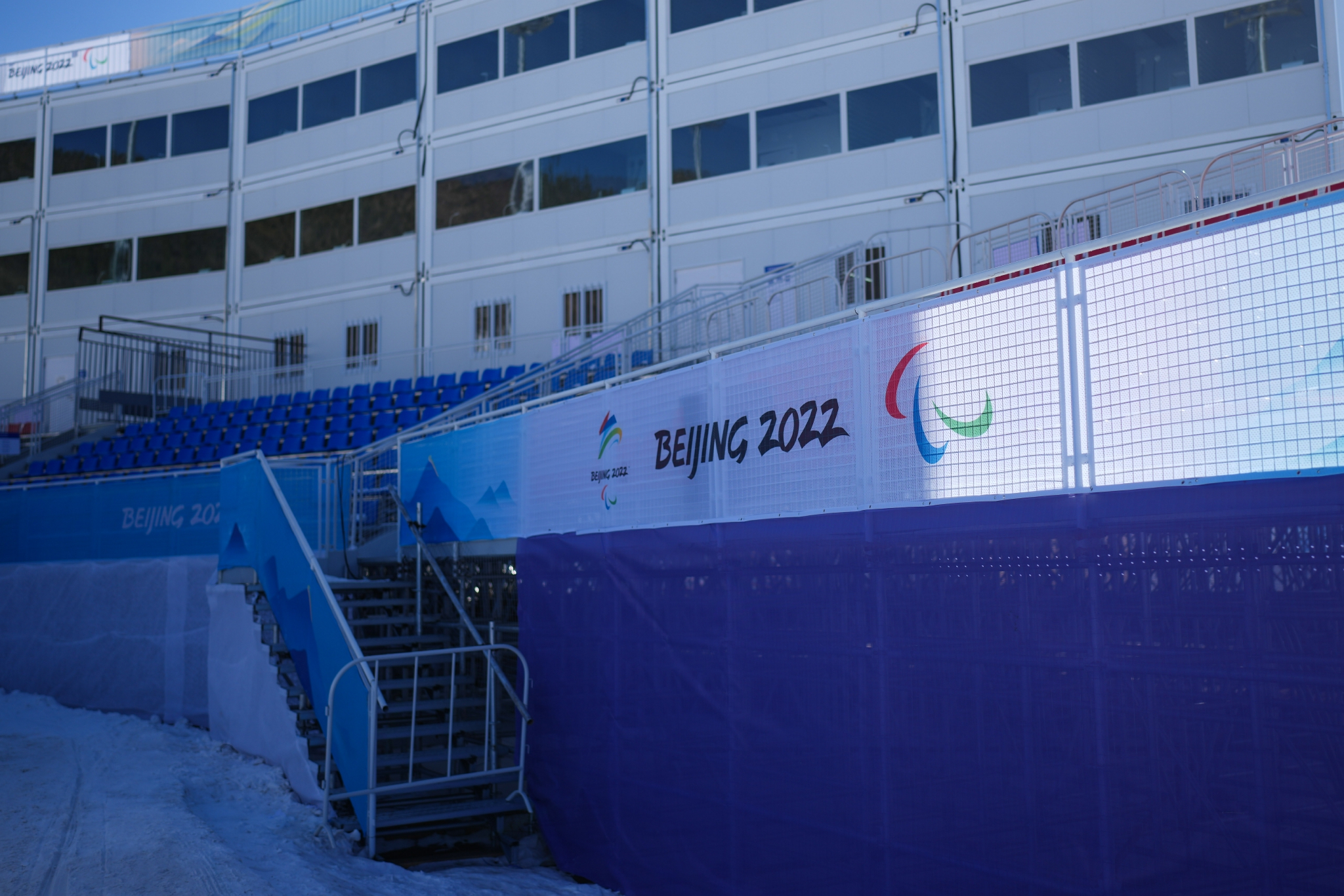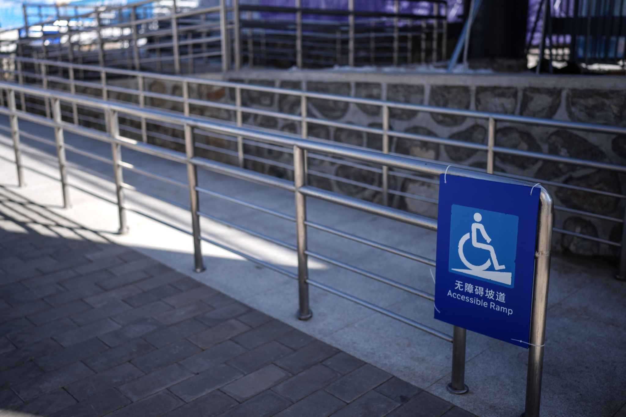 2月25日,在國家冬季兩項(xiàng)中心場館拍攝的無障礙坡道。新華社記者 彭子洋 攝