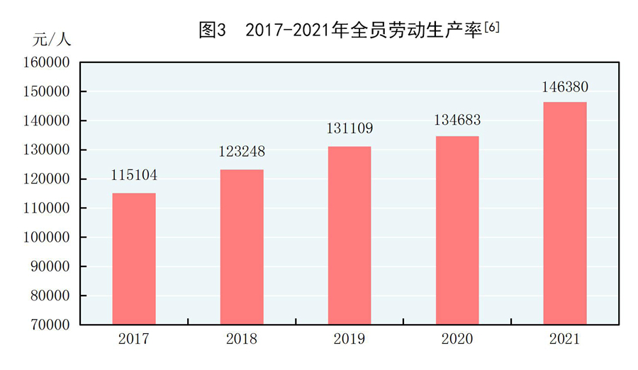[5]全員勞動生產(chǎn)率為國內(nèi)生產(chǎn)總值(按2020年價格計算)與全部就業(yè)人員的比率,根據(jù)第七次全國人口普查結果對歷史數(shù)據(jù)進行了修訂。