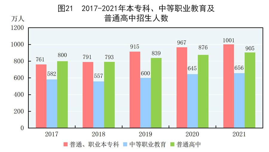 [65]普通、職業(yè)本?瓢ㄆ胀ū究啤⒙殬I(yè)本科、高職(?疲2021年高職(?疲┱猩藬(shù)統(tǒng)計口徑發(fā)生變化,包含五年制高職轉(zhuǎn)入?普猩藬(shù)。
