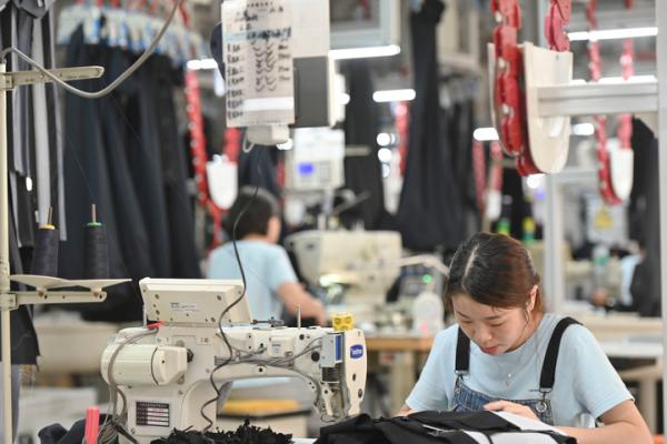 在位于福建省泉州市經(jīng)濟(jì)技術(shù)開(kāi)發(fā)區(qū)的九牧王西褲智能化生產(chǎn)車(chē)間,工人在自動(dòng)化西褲吊掛流水線上作業(yè)(2021年7月30日攝)。近年來(lái),泉州市稅務(wù)部門(mén)積極落實(shí)減稅降費(fèi),出臺(tái)一系列穩(wěn)定工業(yè)、扶持外貿(mào)、鼓勵(lì)企業(yè)研發(fā)創(chuàng)新的政策,服務(wù)實(shí)體經(jīng)濟(jì)發(fā)展。新華社記者 宋為偉 攝
