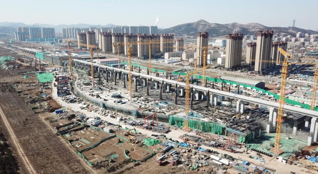 圖為2月22日,山東省濟(jì)南市濟(jì)萊高鐵港溝站施工現(xiàn)場。 新華社記者 李小波 攝