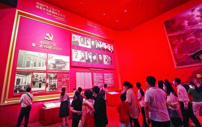 觀眾在中國共產(chǎn)黨歷史展覽館參觀。新華社發(fā)