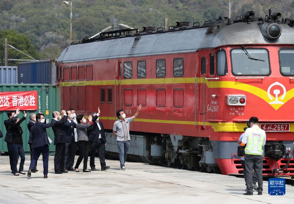 “中央援港 同心抗疫”鐵路援港班列抵達香港(3月2日攝)。