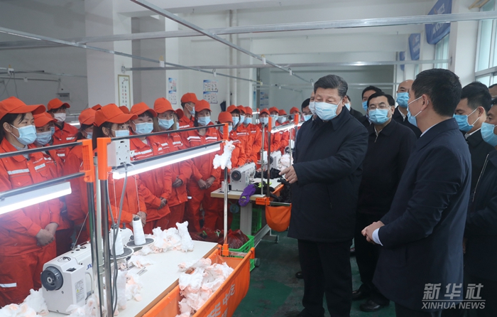 2020年4月20日至23日,習(xí)近平在陜西考察。這是4月21日,習(xí)近平在安康市平利縣老縣鎮(zhèn)錦屏社區(qū)考察社區(qū)毛絨玩具廠,了解搬遷群眾就業(yè)情況。這家玩具廠的員工基本上都是女工,之前她們住山上,要么外出打工,要么留守照顧家庭,只能選一頭。如今搬下山住,既能打工又能照顧家庭。