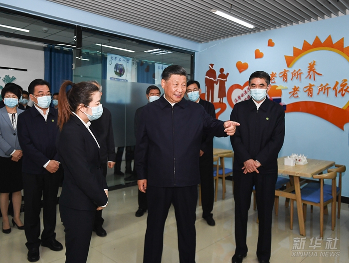 2021年6月7日至9日,習(xí)近平在青?疾。這是7日下午,習(xí)近平在西寧市城西區(qū)文匯路街道文亭巷社區(qū)幸福食堂,了解社區(qū)向老年人提供餐飲服務(wù)情況。