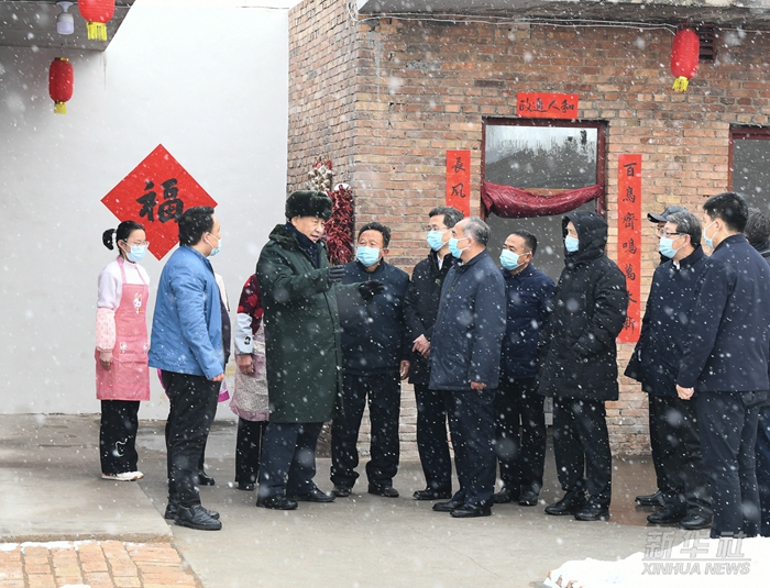 2022年1月26日至27日,習(xí)近平來(lái)到山西,看望慰問(wèn)基層干部群眾。這是26日下午,習(xí)近平在臨汾市霍州市師莊鄉(xiāng)馮南垣村受災(zāi)村民師紅兵家看望。