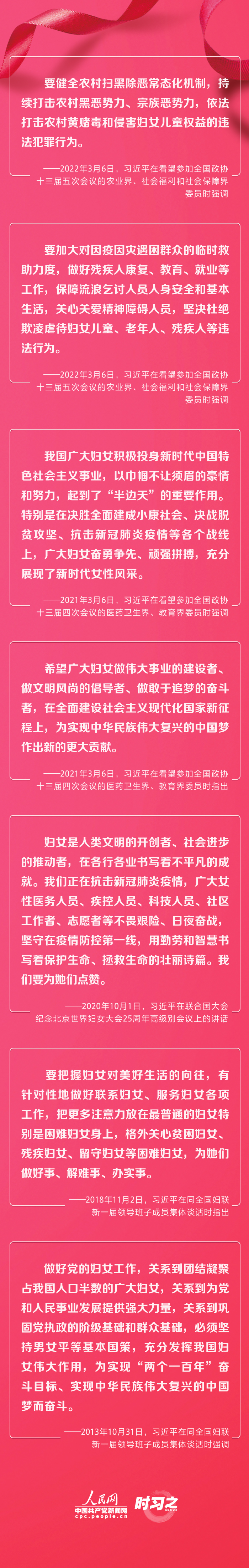習(xí)近平曾在多個場合強調(diào)保障婦女權(quán)益,表達對廣大婦女的親切關(guān)懷和高度贊揚,殷殷關(guān)懷凝聚巾幗之力。