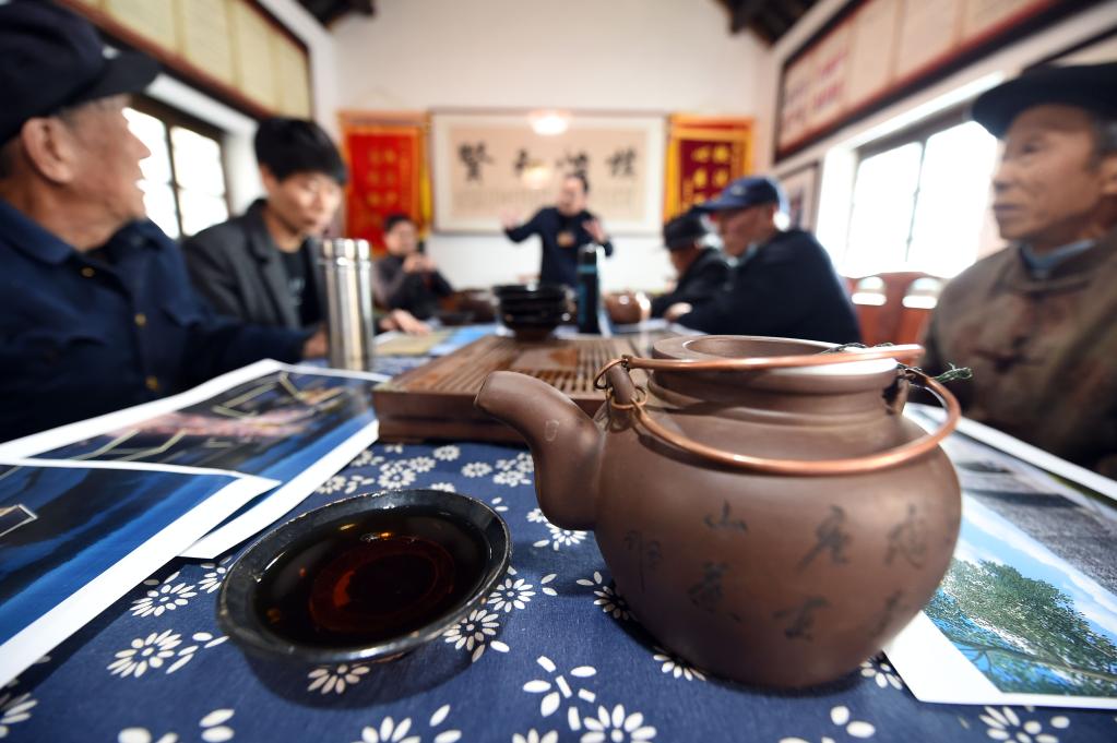古樸的茶館里,老茶客劉進華與幾位鄉(xiāng)親圍坐桌旁,商量著在人大代表接待日提出一個建議——修建公廁,既方便游客,也提升小鎮(zhèn)形象。