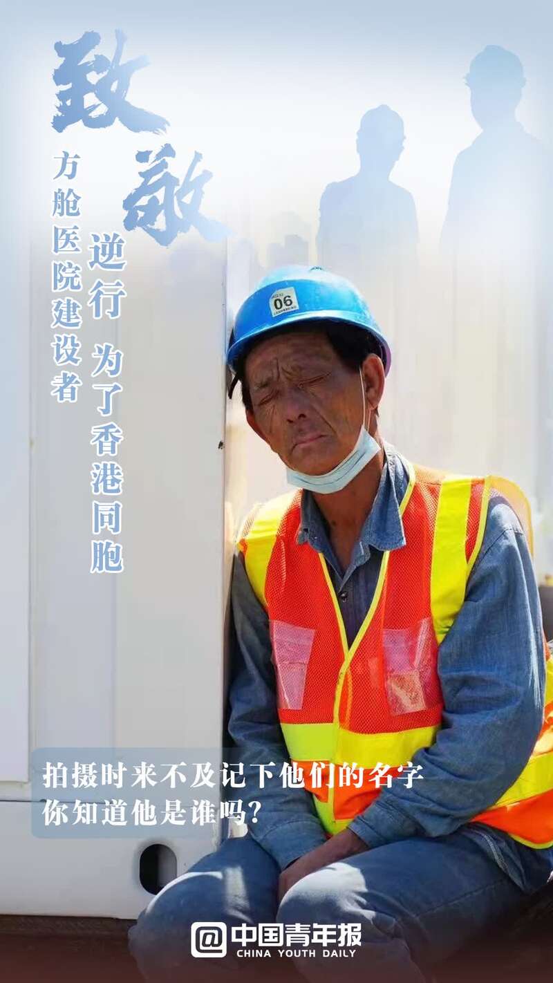 中國(guó)青年報(bào)客戶端北京3月9日電(中青報(bào)·中青網(wǎng)記者 寧迪 金卓 制圖:馬群 拍攝:孟曉白)日曬雨淋間,戴著口罩的臉,捂成了兩種顏色;雙耳后側(cè),口罩勒痕反復(fù)摩擦,出血后留下了結(jié)痂;站在戶外,手上捧著盒飯,眼睛望向的卻是工地的進(jìn)度;任何一處有支撐的物體,都能成為他們累極了的依靠。這群人中,有內(nèi)地員工,也有香港員工,更有00后……面臨香港不斷攀升的新冠確診人數(shù),他們甚至來(lái)不及與家人告別,就奔赴工地,披星戴月趕建出一座座中央援港方艙醫(yī)院。在這里,建設(shè)者只有一個(gè)共同的目標(biāo)——搶救生命,建設(shè)希望。致敬,辛苦!