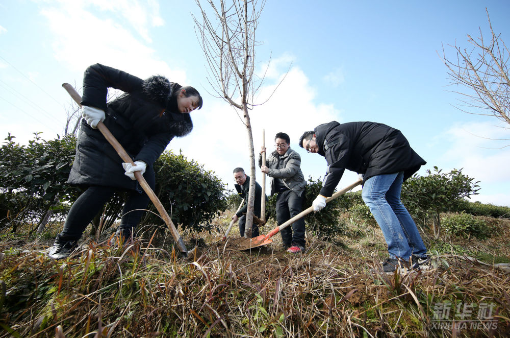 2022年2月7日,貴州省黔東南苗族侗族自治州丹寨縣干部群眾參加植樹活動。