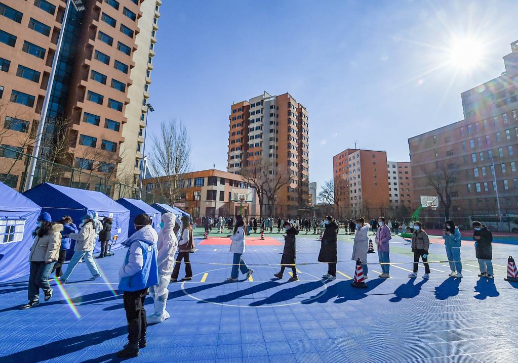 3月2日,內蒙古醫(yī)科大學學生在校園內排隊做核酸檢測。新華社記者 彭源 攝