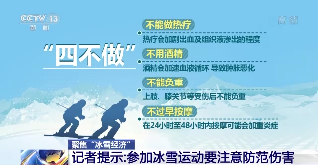 相比一般運(yùn)動(dòng)和旅游等,冰雪運(yùn)動(dòng)給人們帶來(lái)激情體驗(yàn)的同時(shí),蘊(yùn)含的風(fēng)險(xiǎn)也更高。因此,參加冰雪運(yùn)動(dòng)更需要做好防護(hù),一旦發(fā)生了損傷,要牢記“五做四不做”。