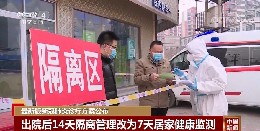 方案還調(diào)整解除隔離管理、出院標(biāo)準(zhǔn)以及解除隔離管理、出院后注意事項。比如,將“出院后繼續(xù)進行14天隔離管理和健康狀況監(jiān)測”修改為“解除隔離管理或出院后繼續(xù)進行7天居家健康監(jiān)測”。