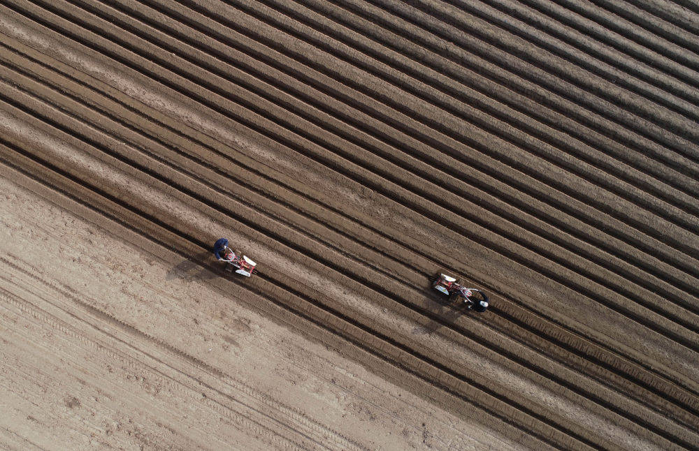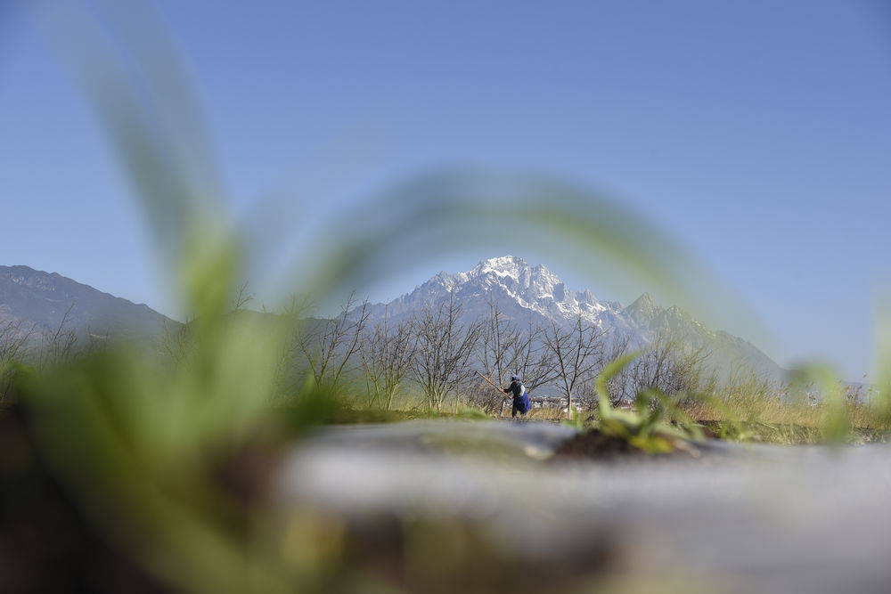 ↑ 在云南省麗江市玉龍縣黃山鎮(zhèn),村民在地里勞作。