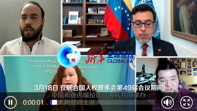 3月18日,在聯(lián)合國人權理事會第49屆會議期間,中國和委內(nèi)瑞拉在日內(nèi)瓦共同舉辦“美國、加拿大、澳大利亞對土著人權利的系統(tǒng)性侵犯”主題視頻邊會。駐日內(nèi)瓦外交官、非政府組織代表、專家、媒體記者等150余人在線參會。