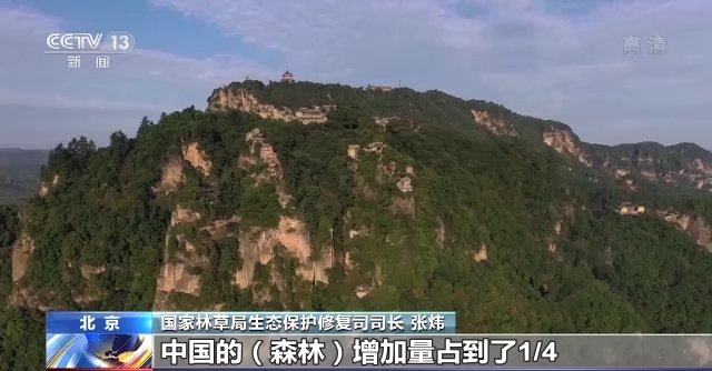 國(guó)家林草局生態(tài)保護(hù)修復(fù)司司長(zhǎng) 張煒:2019年,美國(guó)航天衛(wèi)星拍攝的結(jié)果,就是在近20年期間,地球在逐步變綠,中國(guó)的(森林)增加量占到了1/4,位居世界第一。