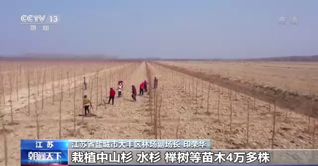 江蘇省鹽城市大豐區(qū)林場(chǎng)副場(chǎng)長(zhǎng) 印榮華:我們沿海防護(hù)林三期工程一共1200畝,目前已完成造林800畝,栽植中山杉、水杉、櫸樹(shù)等苗木4萬(wàn)多株,這樣就進(jìn)一步增加我們森林資源總量,使沿海生態(tài)防護(hù)林功能更加完善。
