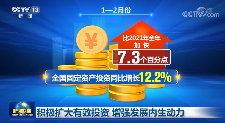 最新統(tǒng)計數(shù)據(jù)顯示,1—2月份,全國固定資產(chǎn)投資同比增長12.2%,比2021年全年加快7.3個百分點,其中,投資新開工項目個數(shù)同比增長1.1倍,新開工項目計劃總投資增長62.8%。