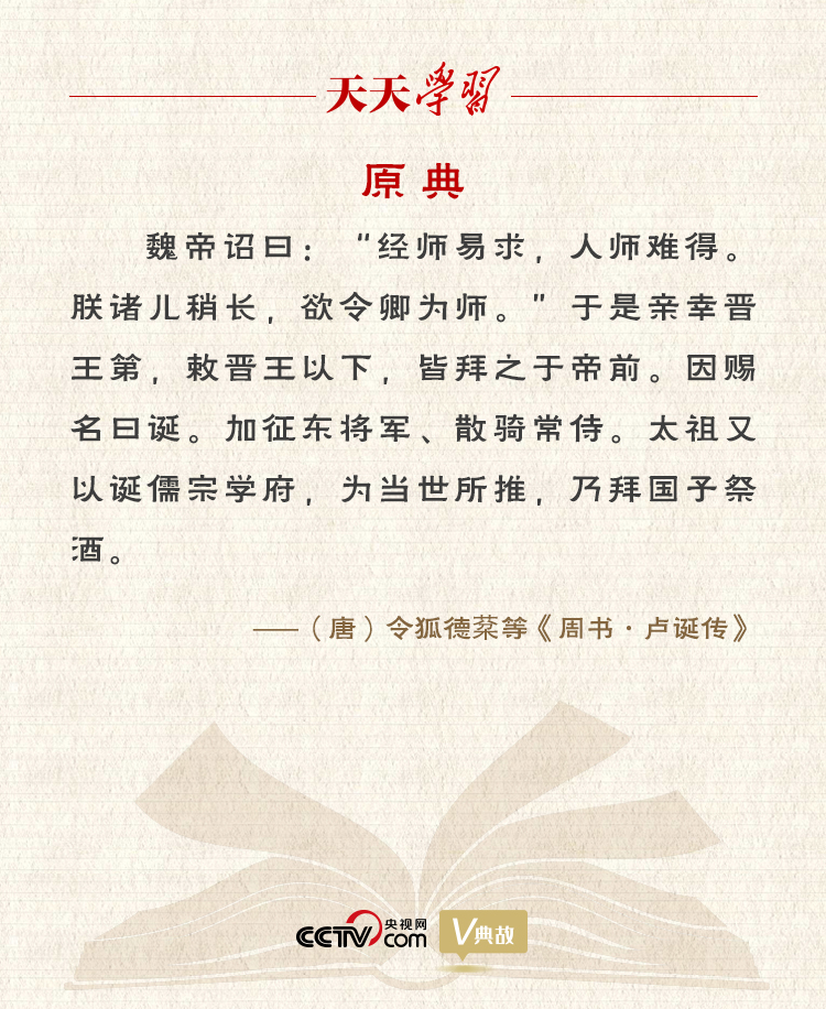 “經師易求,人師難得”語出《周書·盧誕傳》,意思是找一個只是傳授經學知識的老師很容易,找一個教你怎么做人且以自己的行為加以示范的老師卻很難。