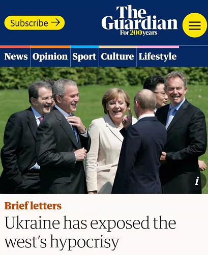 △英國(guó) 《衛(wèi)報(bào)》刊文說(shuō),烏克蘭暴露了西方的偽善。