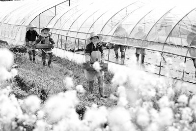 江西省宜春市上高縣泗溪鎮(zhèn)曾家村育秧基地,村民正在搬運(yùn)秧盤。陳旗海攝/光明圖片
