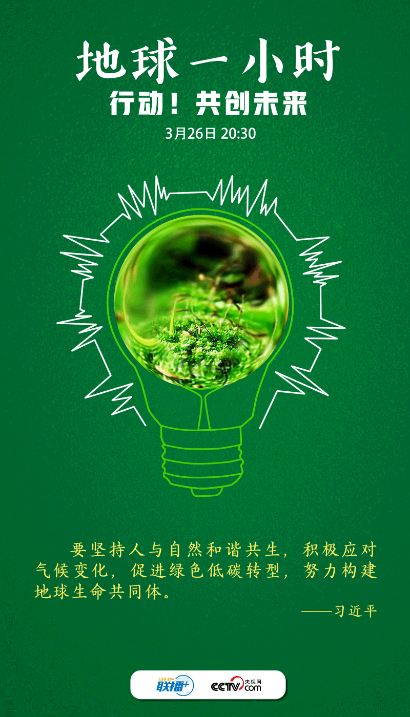 保護地球不止一小時。央視網(wǎng)《聯(lián)播+》梳理總書記相關(guān)論述,邀您一起“節(jié)”盡所“能”,爭當(dāng)?shù)厍蚣覉@呵護者、綠色生活理念傳播者、低碳生活方式踐行者,為建設(shè)綠色新家園多作貢獻。