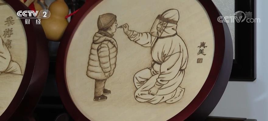 眼前這一件件圓形烙畫作品是抗疫人員在一線奮戰(zhàn)的模樣,讓人看了既溫暖又有力量。本輪疫情發(fā)生以后,家住常州天寧區(qū)和平國際花園的范先生拿起手中烙筆,創(chuàng)作了十多幅這樣的烙畫。