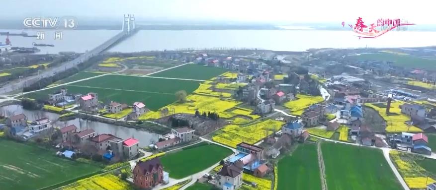 央視網(wǎng)消息:麥田披綠,菜花盛放。在江蘇南通通州區(qū)的開沙村,這里春風(fēng)蕩漾,岸青柳綠,從空中俯瞰,麥苗碧綠鮮亮,油菜花熱烈燦爛,中間點(diǎn)綴著錯落有致的民居。