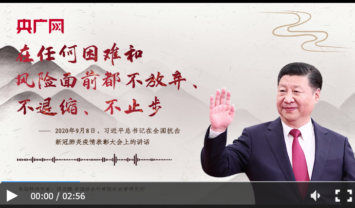 這段話出自2020年9月8日習(xí)近平總書記在全國抗擊新冠肺炎疫情表彰大會上的講話。