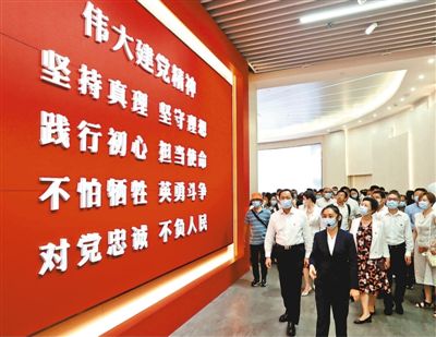 人們?cè)谥泄惨淮蠹o(jì)念館觀看“偉大建黨精神”展覽。新華社記者 劉 穎攝