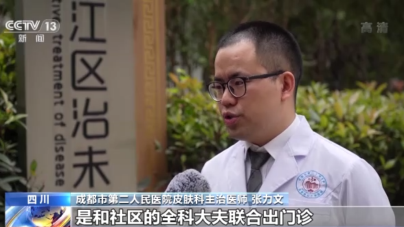成都市第二人民醫(yī)院皮膚科主治醫(yī)師 張力文:我到社區(qū)以后最主要的工作是和社區(qū)的全科大夫聯(lián)合出門(mén)診,指導(dǎo)他們?nèi)绾稳フ_處理一些常見(jiàn)的皮膚疾病。