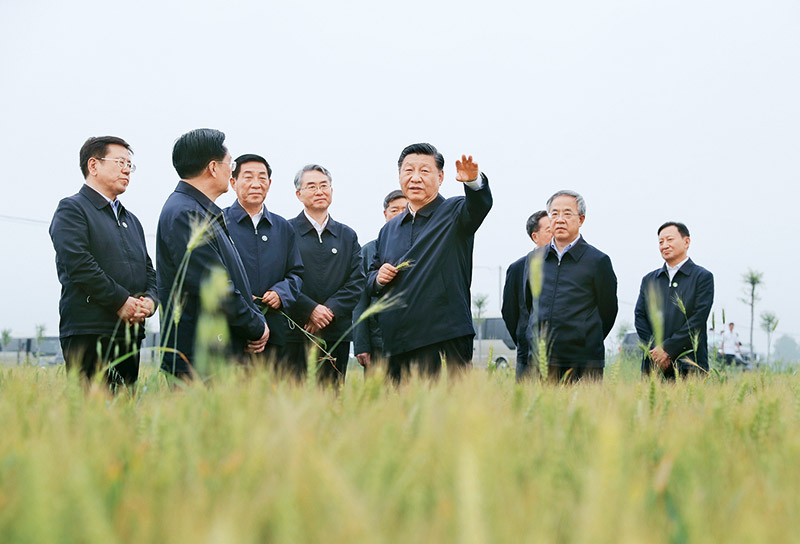 2021年9月13日至14日,中共中央總書記、國家主席、中央軍委主席習(xí)近平在陜西省榆林市考察。這是13日下午,習(xí)近平在米脂縣銀州街道高西溝村臨時(shí)下車,察看糧食作物長勢,同正在田間勞作的老鄉(xiāng)拉家常。 新華社記者 李學(xué)仁/攝