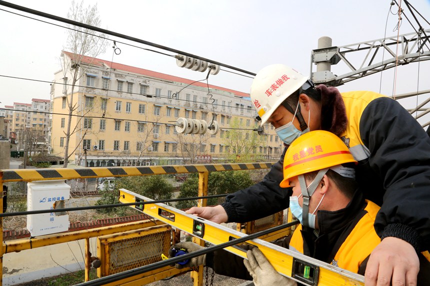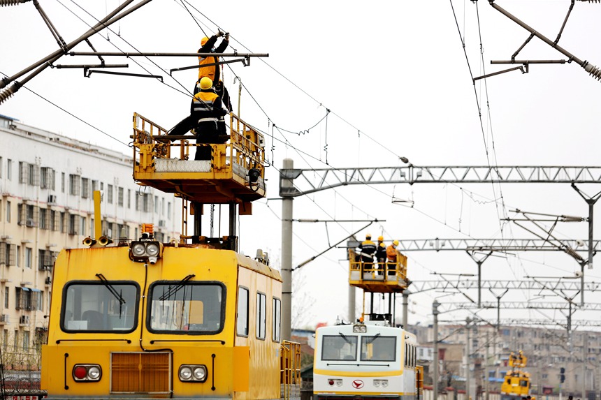 工作人員對開封站接觸網(wǎng)設備進行全面檢查。楊昆攝