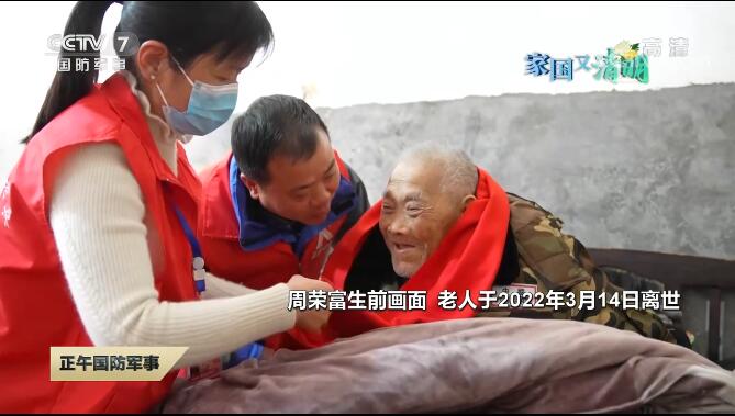 畫面上的老人名叫周榮富,是一名中國人民志愿軍老戰(zhàn)士。老人生前每次看到這張大合影,都會(huì)講起在朝鮮戰(zhàn)場上的那段經(jīng)歷。