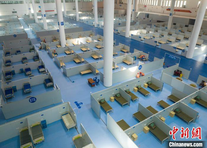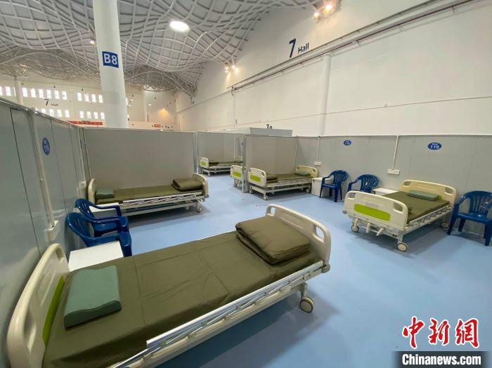 記者在現(xiàn)場看到,7號館已被劃分為大小一致的隔斷空間,每個病區(qū)隔離間可放4-6張病床,其中臨時重癥區(qū)放2張病床。毛昌成說,每個病床位標(biāo)配一套床上用品、一個床頭柜、一把椅子及一套生活物資日用品,包括臉盆、牙膏、牙刷、洗發(fā)液、沐浴液等,后期還會考慮增設(shè)一些活動區(qū)、閱讀區(qū)。