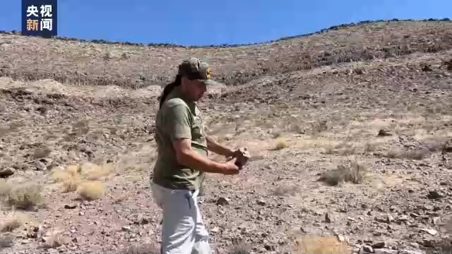在爬上尤卡山的過程中,一路全是碎石。扎巴特展示了尤卡山的石頭是多么脆弱。他隨手撿起一塊石頭,石頭里面全是孔洞,一拍就碎。