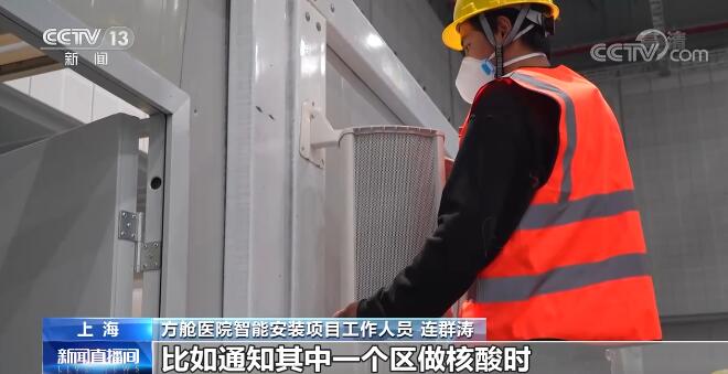 方艙醫(yī)院智能安裝項目工作人員 連群濤:我們在每個區(qū)域都安裝了一套簡便的廣播設(shè)備,比如通知其中一個區(qū)做核酸時,其他區(qū)域不受(廣播)影響。