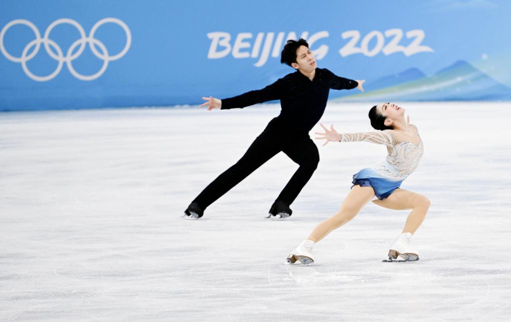 2月19日,北京2022年冬奧會花樣滑冰雙人滑自由滑比賽,中國選手隋文靜(前)/韓聰奪得雙人滑冠軍。新華社記者李一博攝