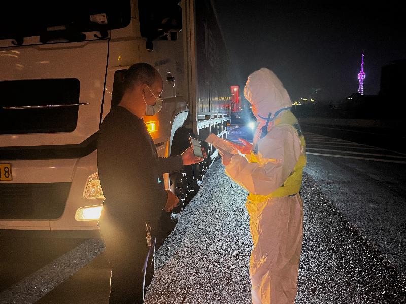 “我是在外面送完貨回來的,就住在奉賢。”4月6日傍晚時分,正在S4上海市區(qū)方向出南橋匝道口的奉賢交警肖潔就遇到了一位卡車司機?墒,在仔細核驗相關通行證明時卻發(fā)現(xiàn),這位司機并沒有防疫保障通信證,而且,其當日進行的核酸檢測還未出具陰性報告。根據(jù)規(guī)定無法在此通行。